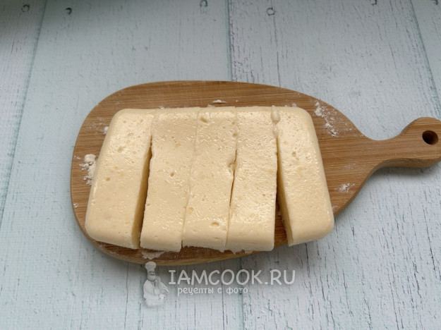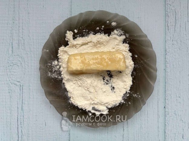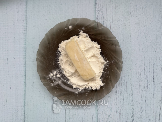Из охлаждённого крема сформуйте небольшие порционные кусочки прямоугольной формы толщиной около 2 см.
