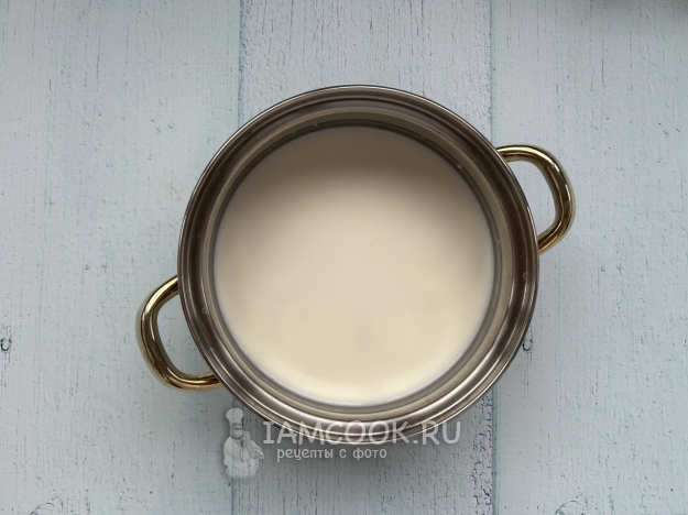 Верните смесь обратно в кастрюлю с горячим молоком. Варите, постоянно помешивая, ещё около 5 минут, пока масса не станет густой и однородной.
