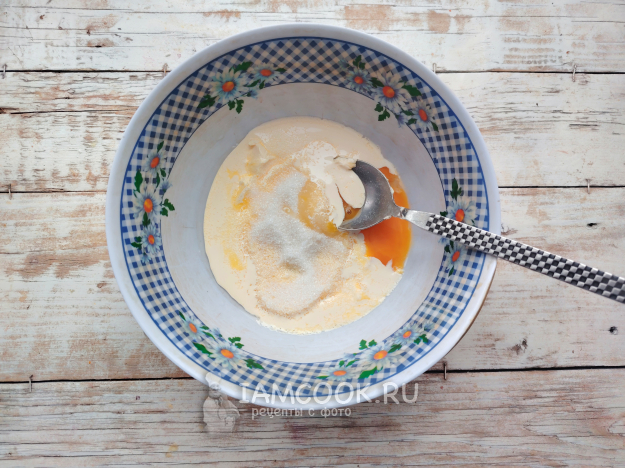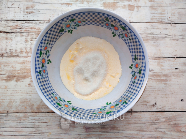 Добавить в миску сахар и соль.
