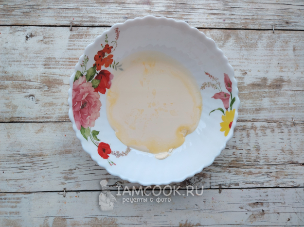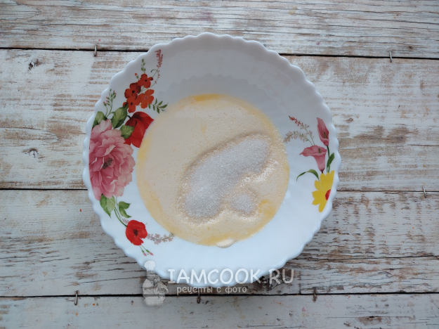 Всыпать в миску сахар, дать ему раствориться, а масляной массе - немного остыть.