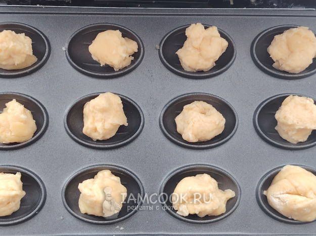 Включить электровафельницу, форму смазать маслом. Отщипывая небольшие кусочки теста, поместить их в ячейки для приготовления орешков.