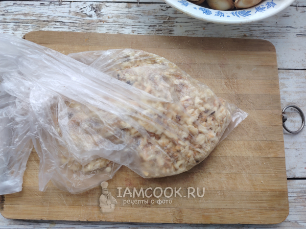 С помощью пакета и скалки измельчить содержимое чашки в крошку.