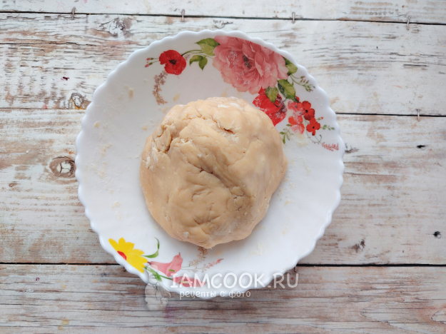 Замешать тесто, собрать его в плотный шар. Убрать в холодильник, завернув в пищевую пленку, на пару часов.