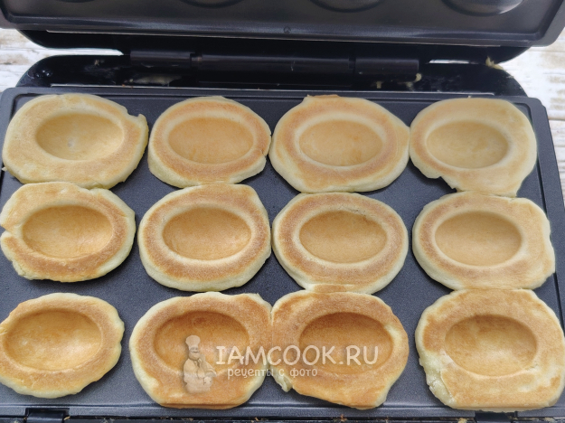 Выпекать их в электровафельнице в течение 2-3 минут, чтобы они хорошо зарумянились.