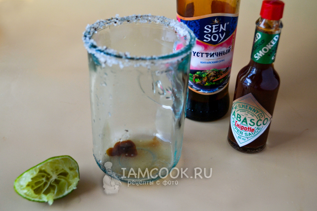 Лайм разрежьте и выжмите сок в стакан, добавьте по вкусу устричный соус или соевый, несколько капель соуса табаско.