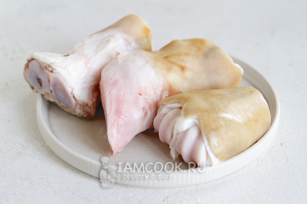Для справки: мотолыжка - это нижняя часть ноги, содержащая крепления, сухожилия и мясо. Все составляющие для холодца я покупала на рынке, и в этот раз мотолыжку выбрала с мясом. Я часто ее покупаю: как для наваристого бульона, так и для холодца. Как сварить холодец из говяжьей мотолыжки, рассказывала в этом рецепте.