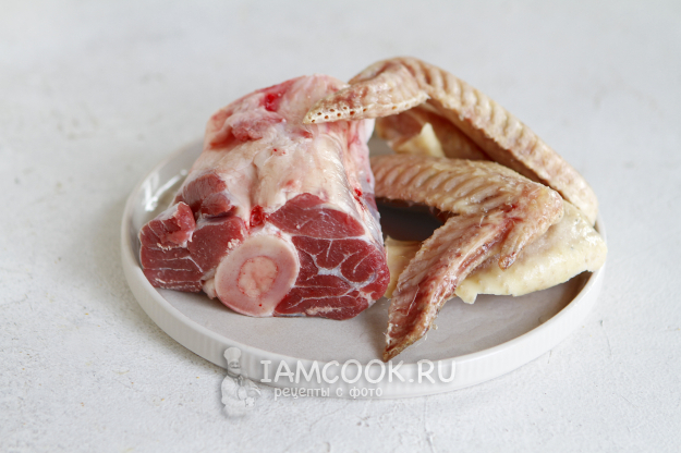 Добавляю еще говяжью мотолыжку и крылья индейки.
