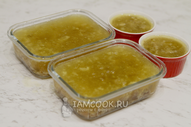 Бульон процедите через несколько слоев марли и разлейте по формочкам.