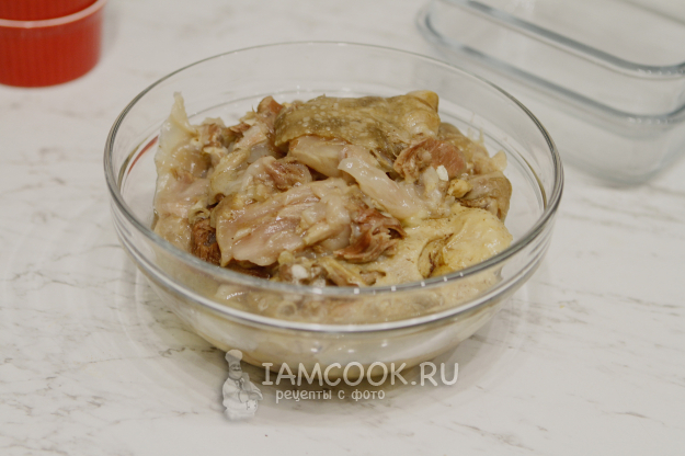 Достаньте крылья и все остальное из кастрюли, отделите от костей и хрящей.