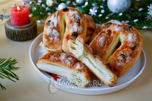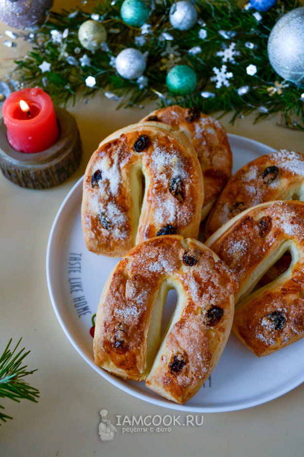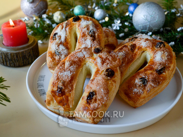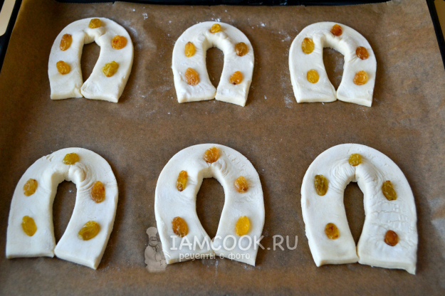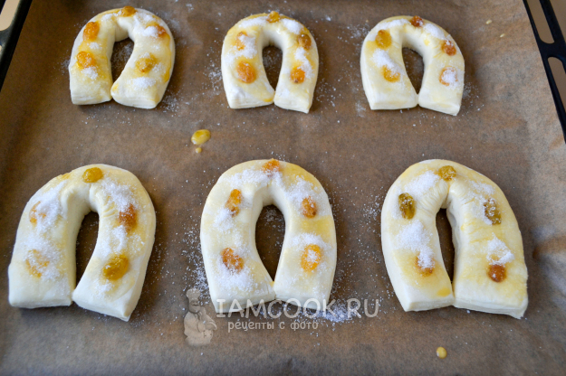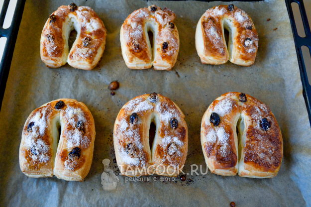 Слойки "Подковы" (из слоеного дрожжевого теста) готовы. Снимите слойки с противня и охладите.