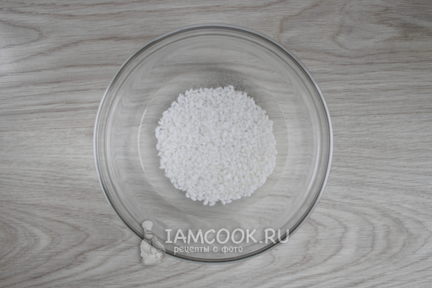 Рис нужно промыть в нескольких водах. Для ускорения варки рекомендуется замочить его примерно на полчаса.