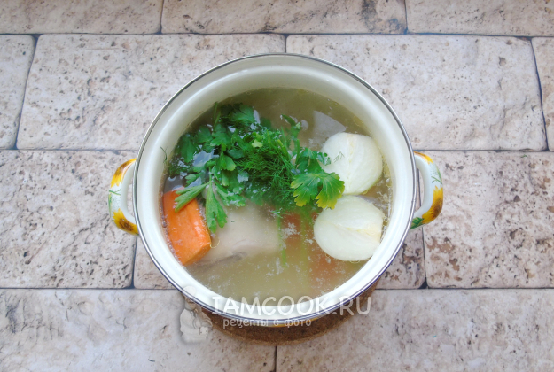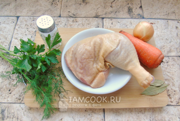 Соберите ингредиенты для приготовления бульона из домашней курицы.