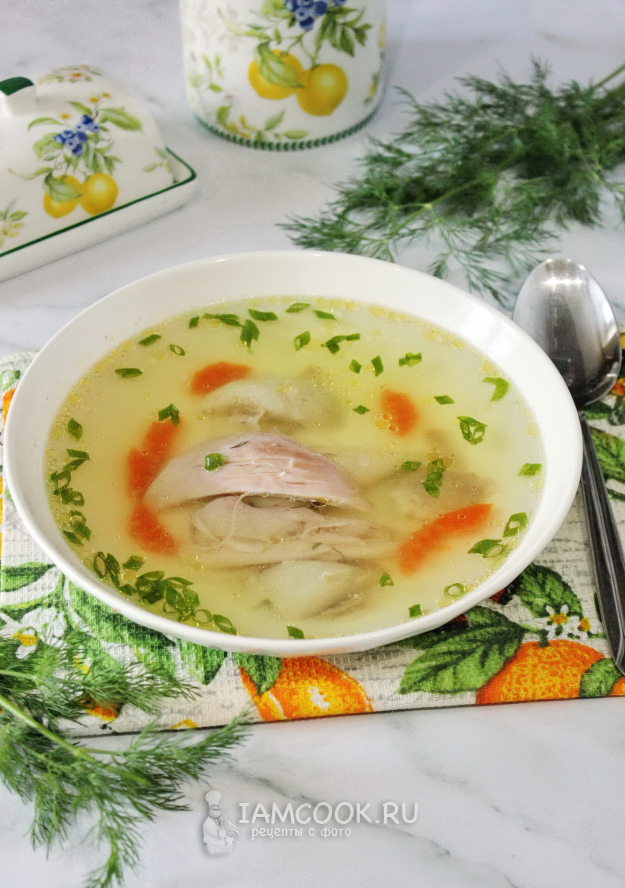 Ароматный, насыщенный, прозрачный, вкусный и полезный бульон из домашней курицы готов.