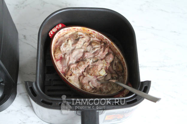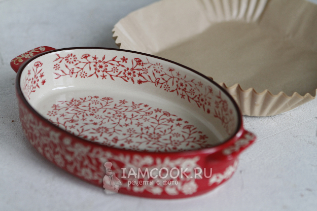 Подготовьте подходящую форму для аэрогриля или бумажные вкладыши для корзины. Если не окажется под рукой ни того, ни другого, чашу аэрогриля можно застелить двойным слоем фольги, сформировав бортики.