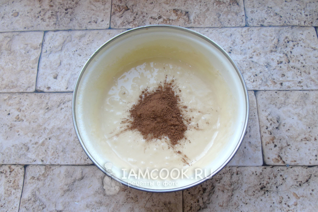 Затем добавьте какао-порошок и снова хорошо перемешайте тесто.
