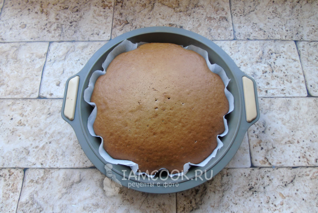 Выпекайте корж в духовке, разогретой до 170-175 градусов. Готовность проверяйте деревянной палочкой: при накалывании в середине коржа она должна выходить сухой.