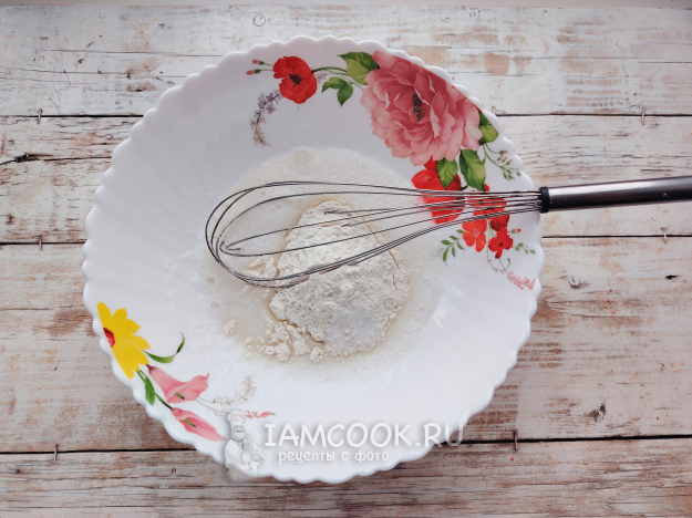 Всыпать просеянную муку, ванилин, чтобы замаскировать запах яйца, замешать тесто.