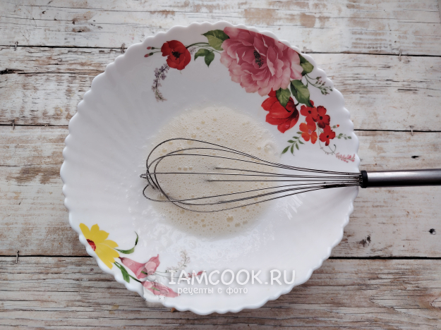 Белки отделить от желтков. Всыпать в миску с белками сахар.