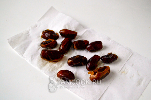 Финики промойте. Если они очень сухие, то залейте прохладной водой на несколько минут, чтобы стали мягче.