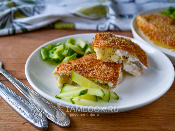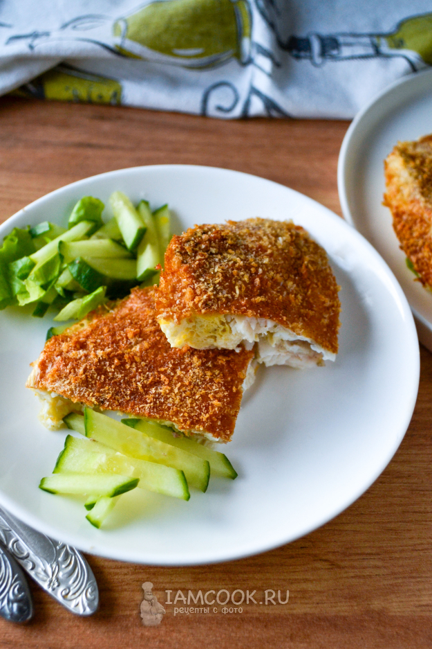 Запеченный в панировочных сухарях судак готов.