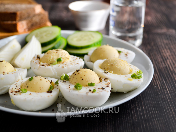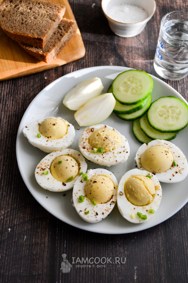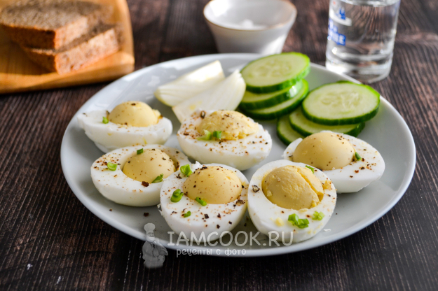 Закуска "Пыж" из яиц готова. По желанию присыпьте "Пыжи" молотым перцем, зеленым луком.