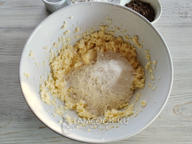 Перемешать и еще подсыпать муки, чтобы сформировать колобок теста.
