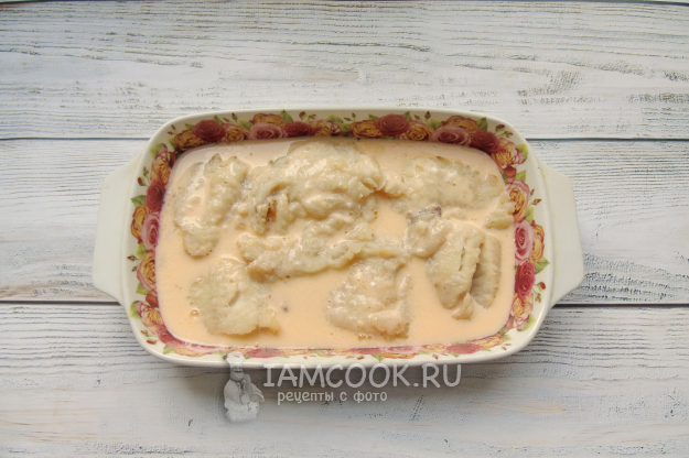 Полученной смесью залейте рыбу в форме.