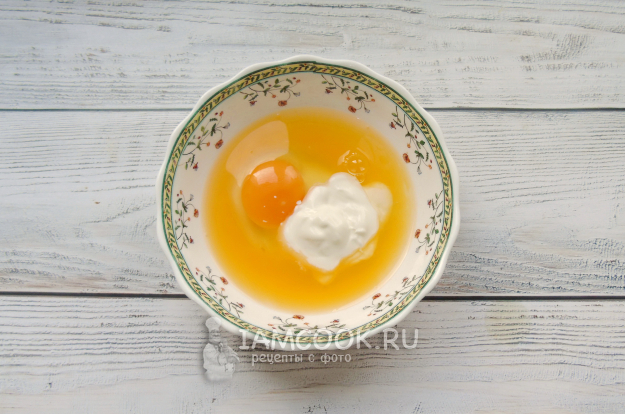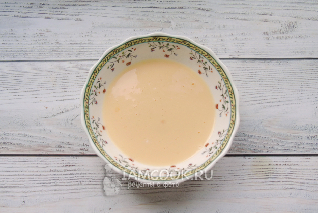 Перемешайте апельсиновый сок, сметану и яйцо до однородной консистенции.
