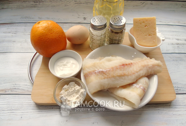 Соберите ингредиенты для приготовления рыбы в апельсиновом соусе в духовке.