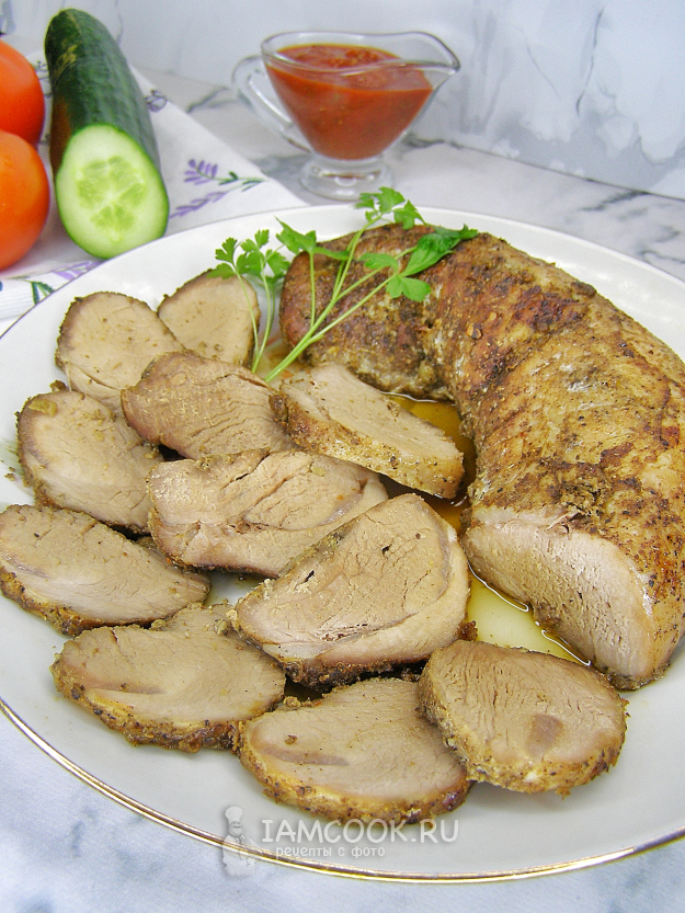 Сочная, ароматная и нежная телятина готова. Нарезаем её кусочками, сверху можно полить соком, который появился во время запекания, и подаём к столу. Приятного аппетита!