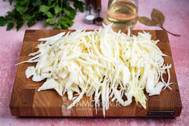 Капусту нашинкуйте тонкой соломкой.