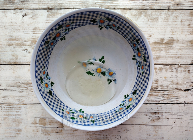 В глубокую посуду влить кипяченую воду комнатной температуры и растительное масло, добавить соль, перемешать.