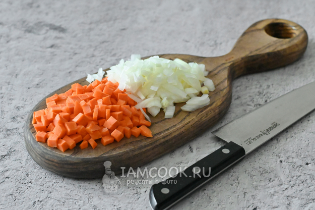 Лук и морковь нарежьте кубиком.