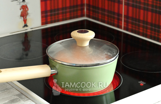 Поставьте кастрюльку на плиту и после закипания варите всё примерно 15-20 минут, до мягкости гречки.