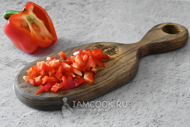 Также кубиком нарежьте сладкий перец.