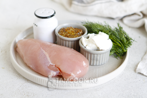 В отдельной чаше смешайте творожный сыр, зерновую горчицу и мелко нарубленный укроп.