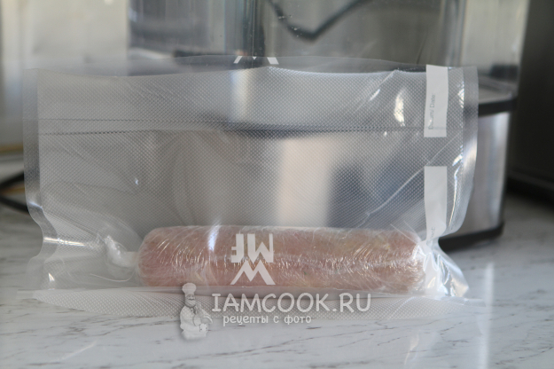 Переложите рулет в пакет для готовки и завакуумируйте.
