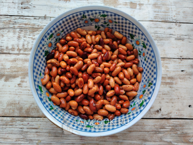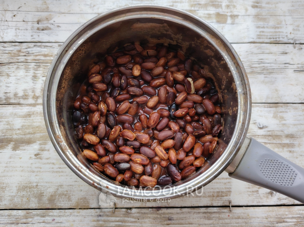Фасоль промыть, залить холодной водой, оставить на ночь для набухания.