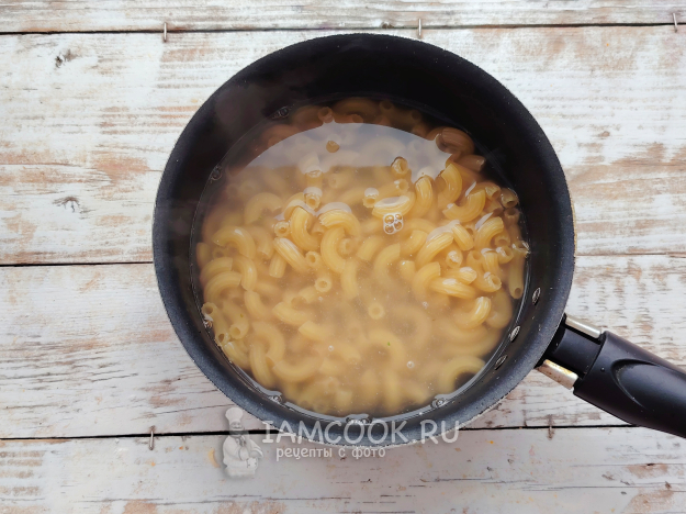 Макароны отварить в подсоленной воде до состояния аль-денте, отвар слить.