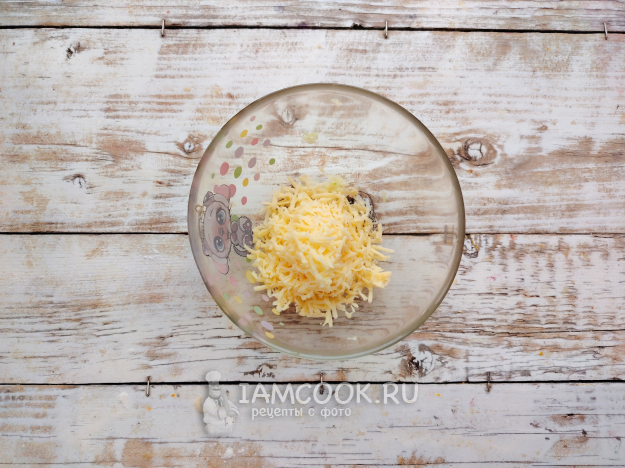 Сыр также измельчить при помощи терки.