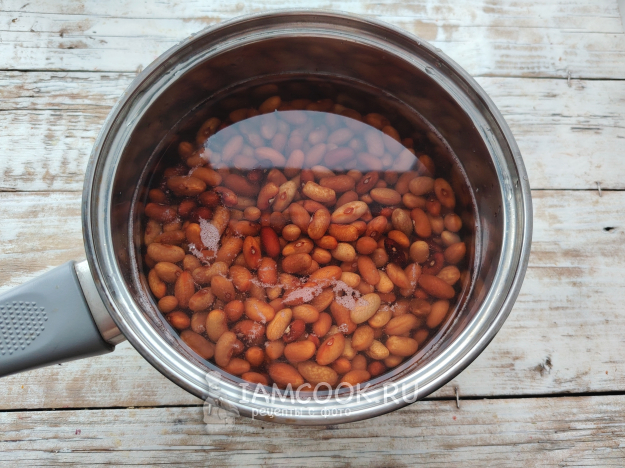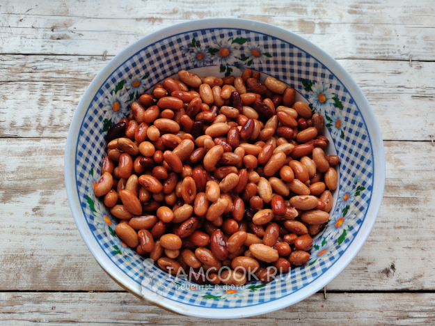 Фасоль промыть, залить холодной водой и оставить на 10 часов или на ночь.