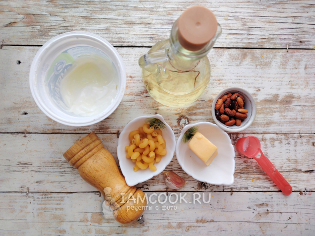 Собрать по списку продукты для приготовления макарон с фасолью и сыром.