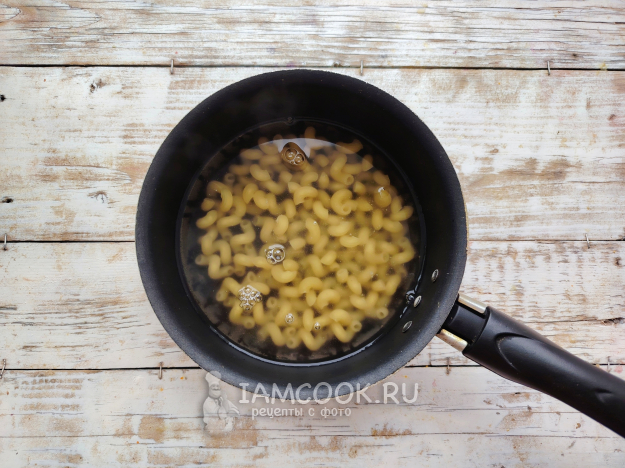 Макароны отварить в подсоленной воде до готовности. Воду слить, макароны переложить на разогретое в сковороде масло.