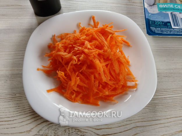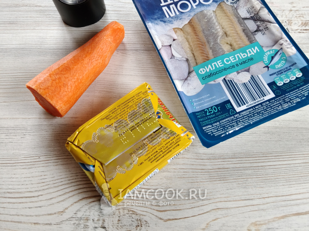 Селедочное масло с морковью готовится из трех основных ингредиентов.
