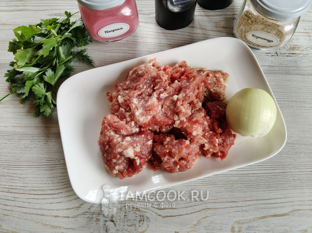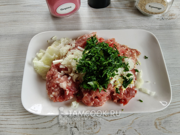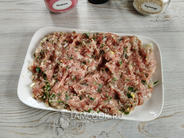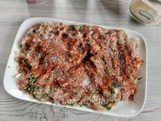 Для кебаба я взяла смешанный фарш из свинины и говядины.