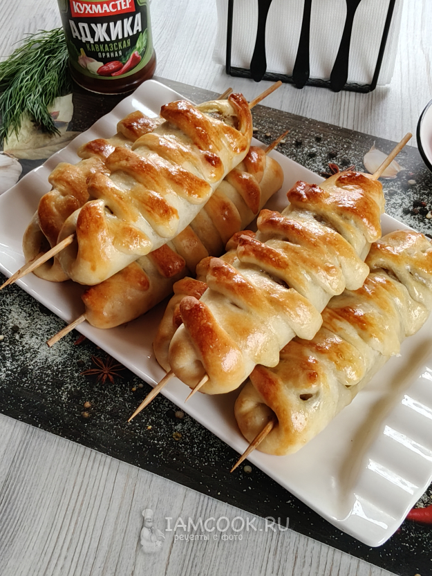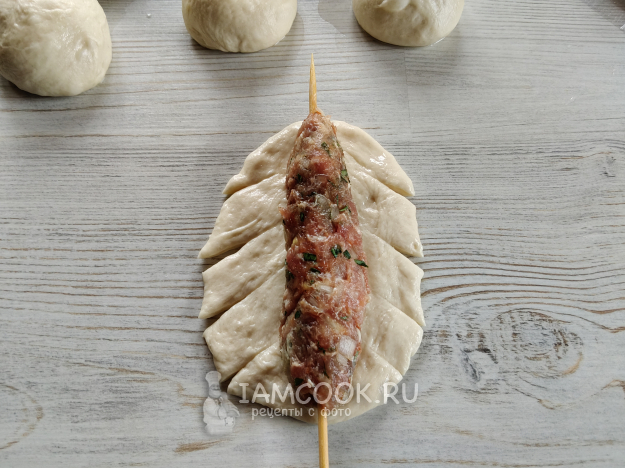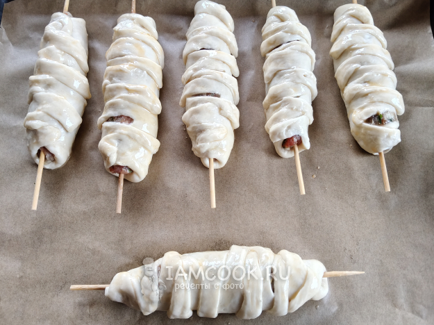 Люля-кебаб в тесте смазать взбитым яйцом.