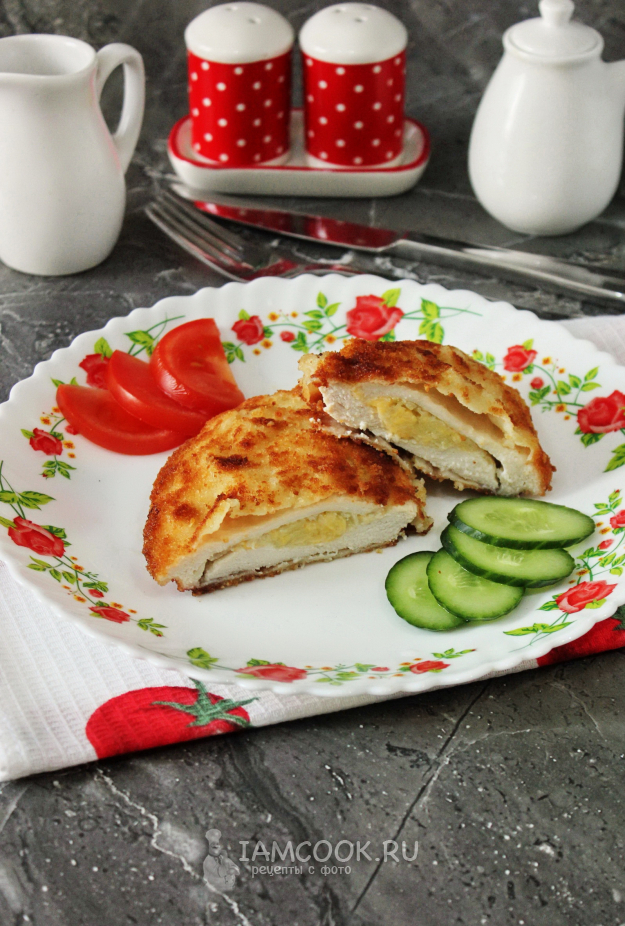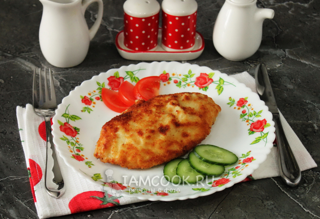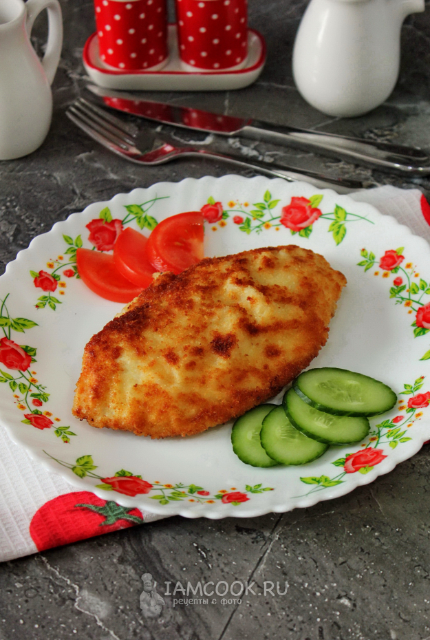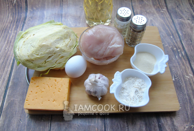 Соберите ингредиенты для приготовления куриного шницеля с капустой.