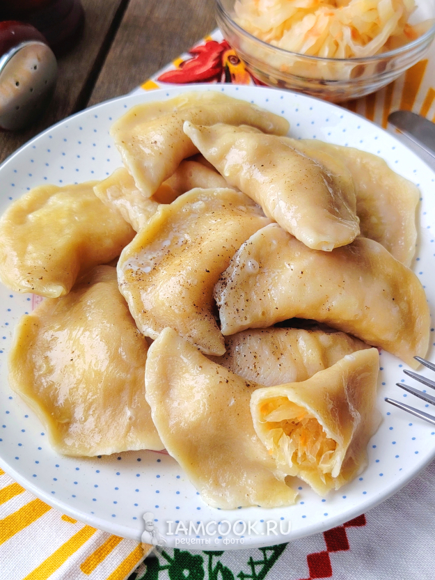 Подать вареники со свежей и квашеной капустой к столу. Приятного аппетита!