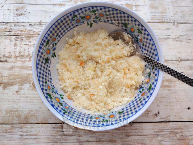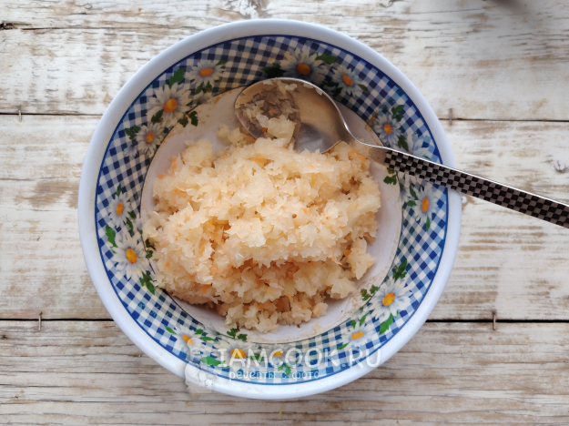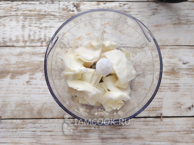 Подготовить начинку. Свежую капусту можно порубить ножом или ручной сечкой, а можно измельчить при помощи блендера.