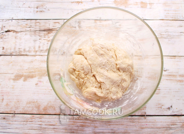 Тесто должно получиться плотным и эластичным, скатать его в шар, завернуть в пакет, убрать на час в холодильник. Такая манипуляция с тестом сделает его податливее в работе.